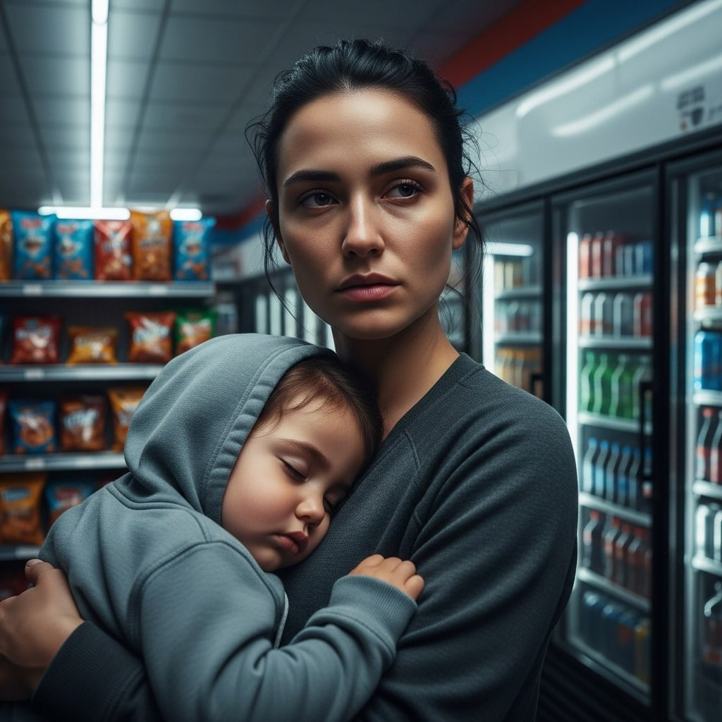 For a second, I thought she was going to burst into tears right there. She nodded quickly, grabbed the bag with her free hand, and ran out into the cold night. Through the window, I saw her clutch the child tightly as she climbed into an old sedan that looked like it had seen better days.