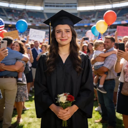 No one came to Emily Carter’s graduation. Not her mom, not her sister, not even the aunt who used to call her “the responsible one.” Emily sat in a sea of families holding balloons and handmade signs while she clutched a borrowed bouquet from a classmate’s extra flowers. When her name was called, she walked across the stage anyway, smiled for the camera, and felt the quiet of being applauded by strangers. Afterward she drifted past groups taking pictures, pretending she was looking for someone.